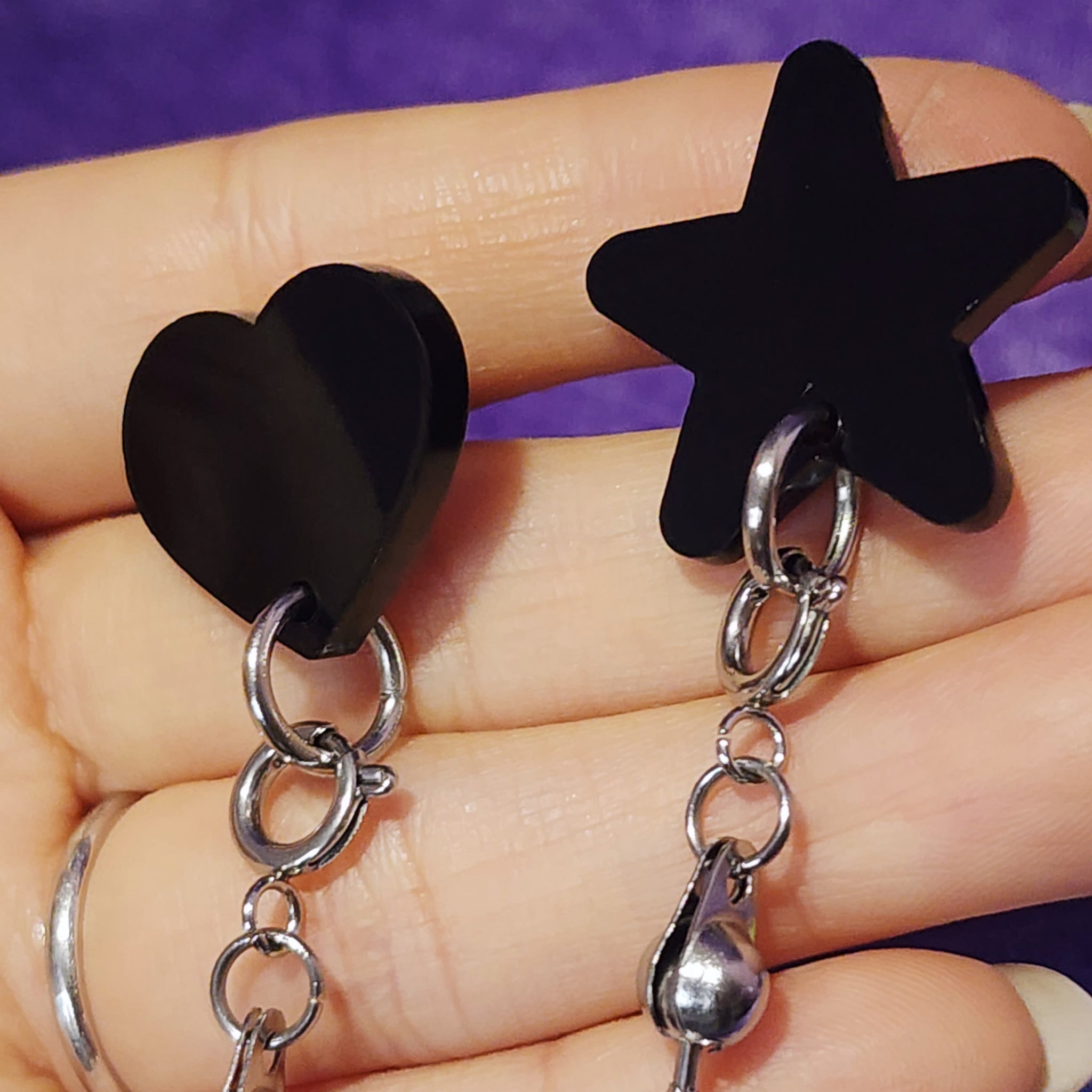 These acrylic pins can be used to connect chains and charms. Use alone to connect charms, or use two to connect chains to. This lets you really customize the way you decorate your bags or clothing. Each pin has an o-ring and a locking pin back so that it is secure and will not fall off no matter how many charms you add to it.